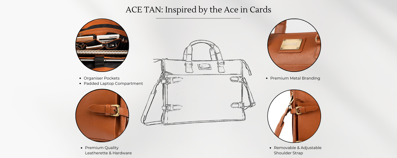 Introducing the Ace Laptop Bag by Smith & Blake. Named after the term "ace," symbolizing excellence and mastery, this bag is designed to elevate your style and performance. Crafted with precision and attention to detail, its tan leatherette exterior exudes sophistication and versatility. Just like an ace card in a deck, this bag represents the winning edge you need in your professional pursuits. With its thoughtfully organized compartments and sleek design, it empowers you to stay organized and efficient on the go. Whether you're conquering the boardroom or exploring new horizons, let the Ace Laptop Bag be your trusted companion, inspiring you to reach new heights of success and making a statement wherever you venture.