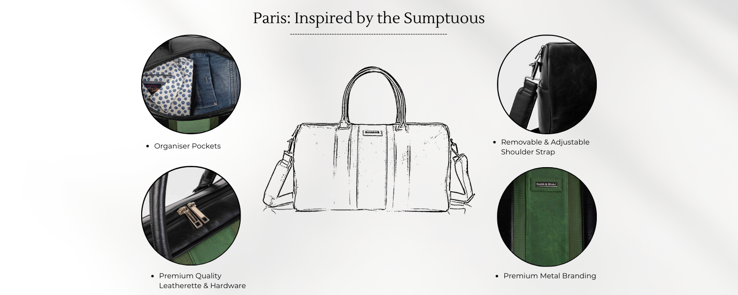 Paris Duffle Bag, a captivating blend of style and sophistication. Let us unfold the story behind its name and the design inspired by the essence of Paris.